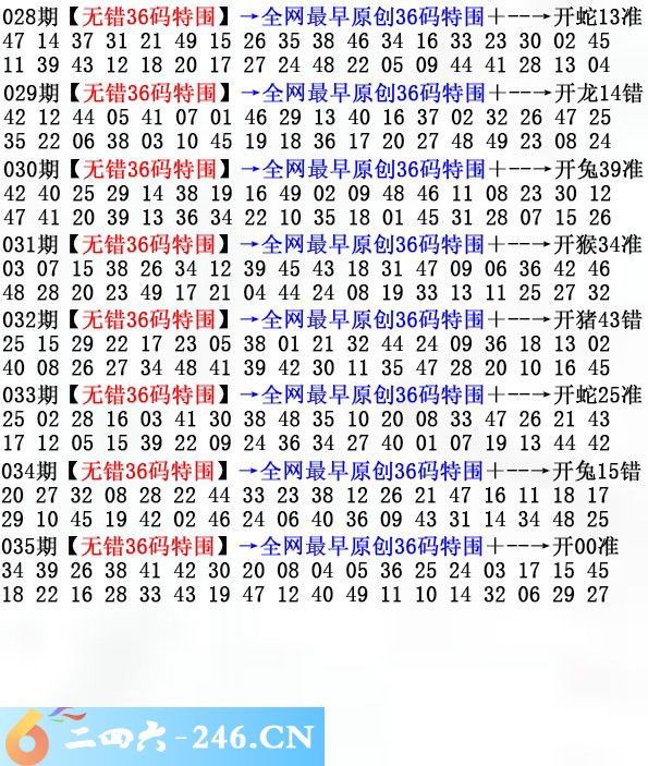 2025036期036期:无错36码
