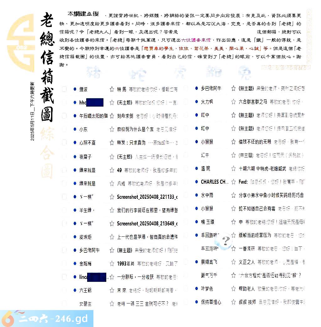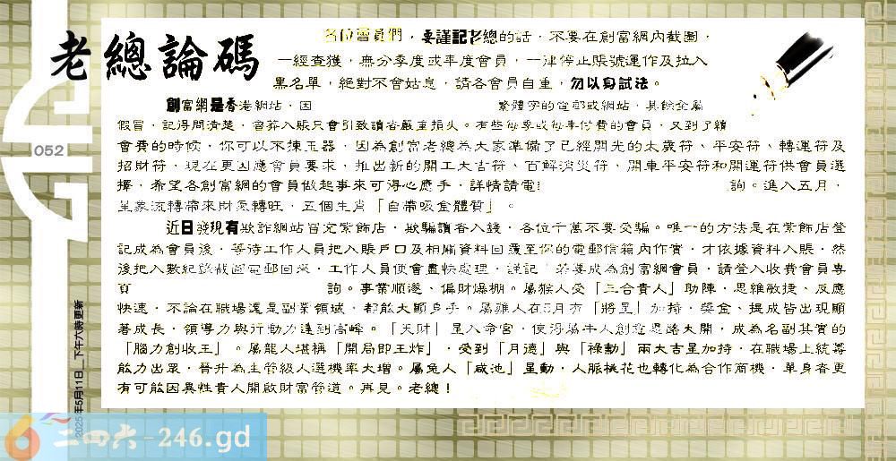 052期:六合皇金句/老总论码/萧公子/林大师/五行夺码/老总信箱截图