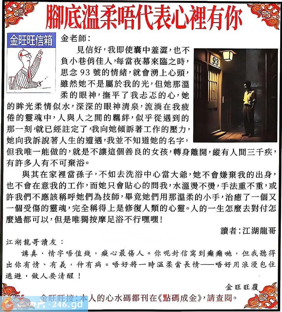 2025007期007期:金旺旺信箱彩民推荐→→《腳底溫柔唔代表心裡有你》