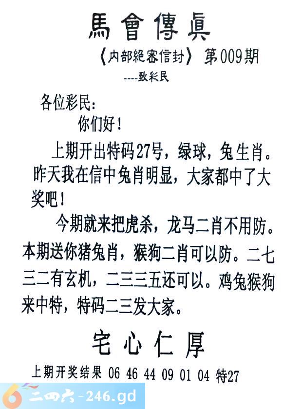 009期:首发推荐:≮馬會傳眞≯→(香港正版)