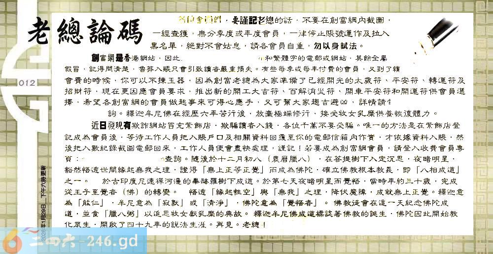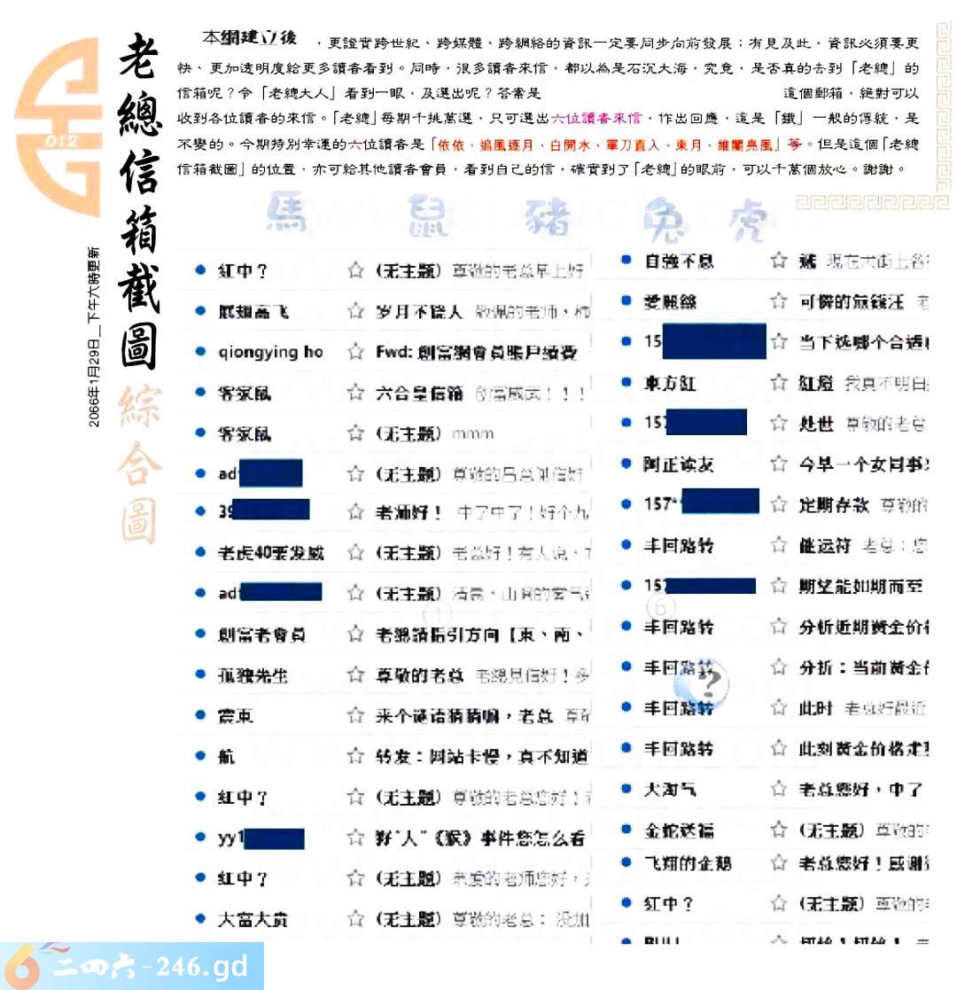 012期:六合皇金句/老总论码/萧公子/林大师/五行夺码/老总信箱截图