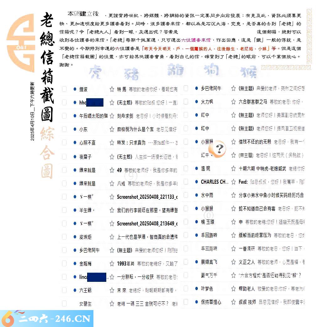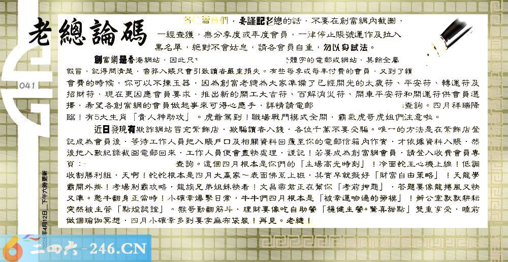 041期:六合皇金句/老总论码/萧公子/林大师/五行夺码/老总信箱截图