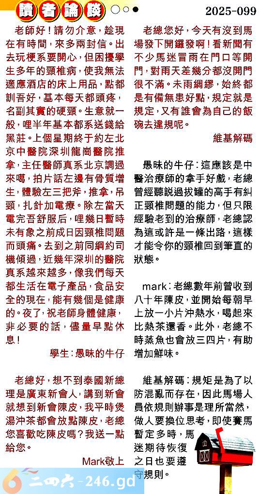 3.老總您好,今天有沒到馬場發下開鑼發啊!看新聞有不少馬迷冒雨在門口等開門,對雨天差幾分都沒開門很不滿。未雨綢繆,始終都是有備無患好點,規定就是規定,又有誰會為自己的飯碗去違規呢。維基解碼
