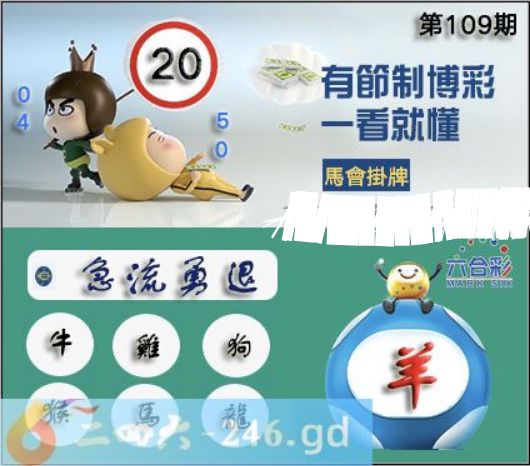 2025年109期正版彩图挂:20 爆:羊 挂牌成语:急流勇退 挂牌出肖:牛鸡狗猴马龙