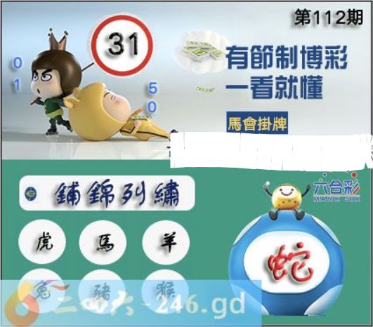 2025112期2025年112期正版彩图挂:31 爆:蛇 挂牌成语:铺锦列绣 挂牌出肖:虎马羊兔猪猴