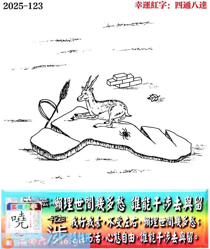 123期老版跑狗一字記之曰:【涉】 詩雲:懶理世間幾多愁,誰能干涉去與留。