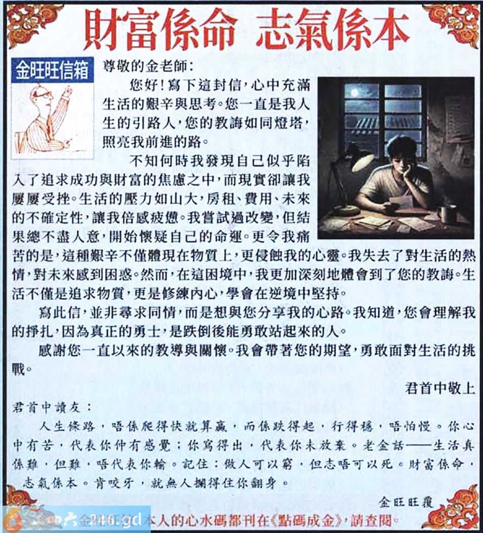 015期:金旺旺信箱彩民推荐→→《財富係命 志氣係本》