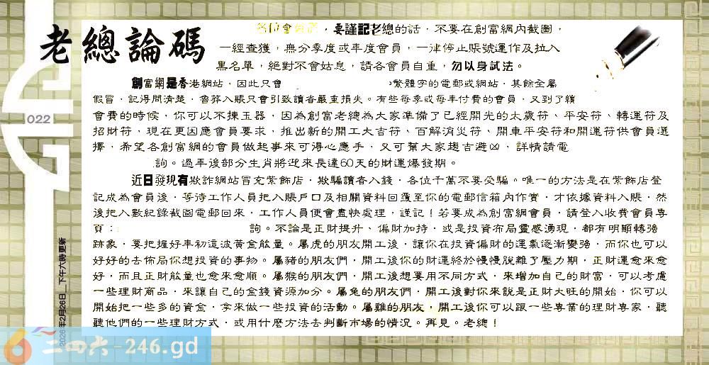 2026023期023期:彩民推荐〖貼信讀者論壇〗