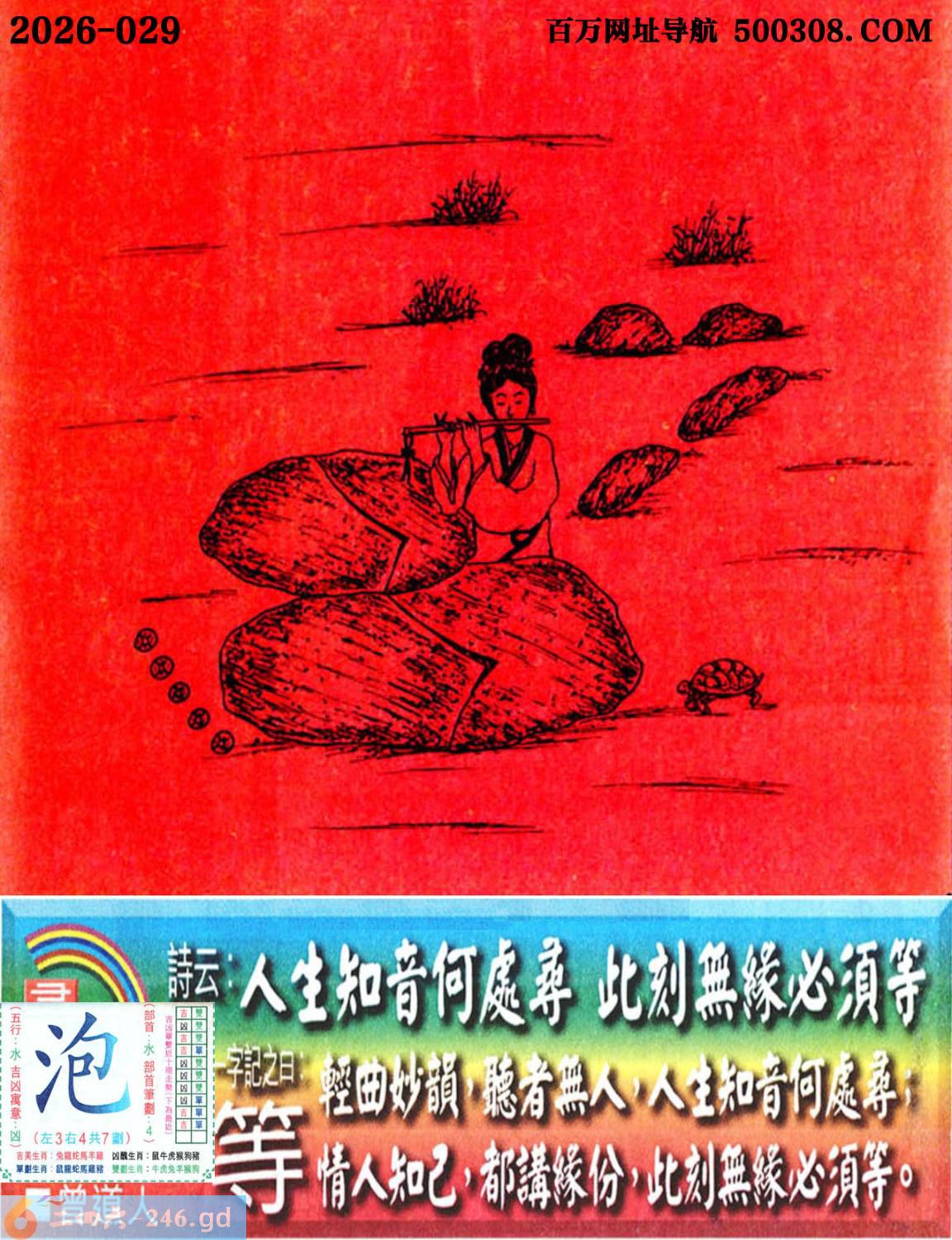本帖最后由天下第二于2026-3-1720:33编辑 029期老版跑狗一字記之曰:【等】 詩雲:人生知音何處尋此刻無緣必須等。 輕曲妙韻,聽者無人,人生知音何處尋; 情人知己,都講緣分,此刻無緣必須等。 既然无缘注定单身 狗蛇 4538