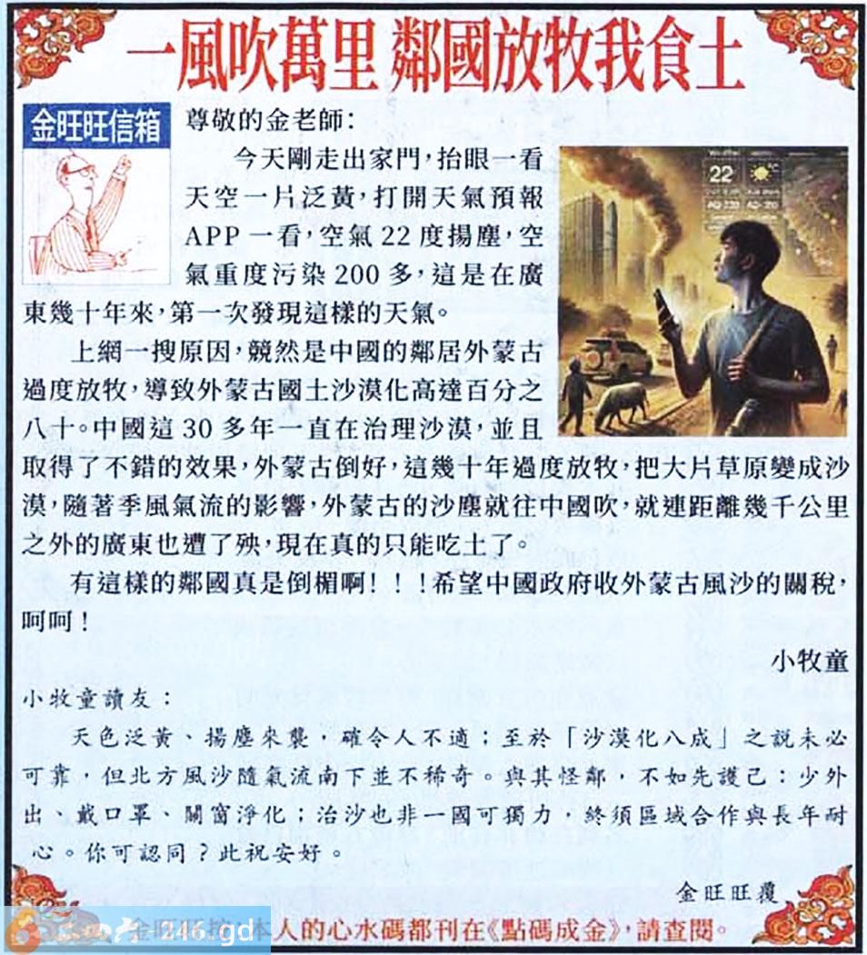033期:金旺旺信箱彩民推荐→→《一風吹萬里 鄰國放牧我食土》