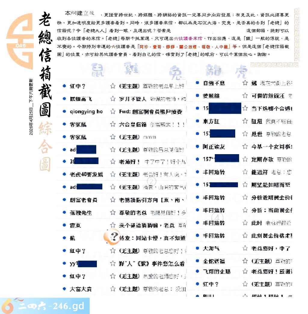 045期:六合皇金句/老总论码/萧公子/林大师/五行夺码/老总信箱截图