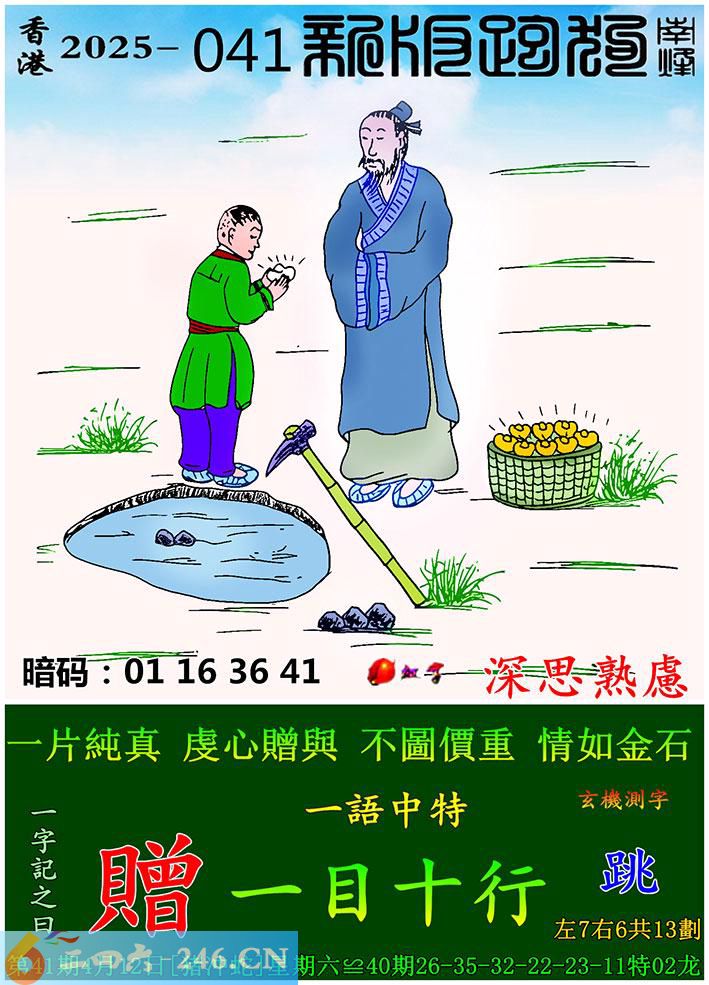 041期跑狗一字記之曰:【贈】 一片純真,虔心贈與。 不圖價重,情如金石。